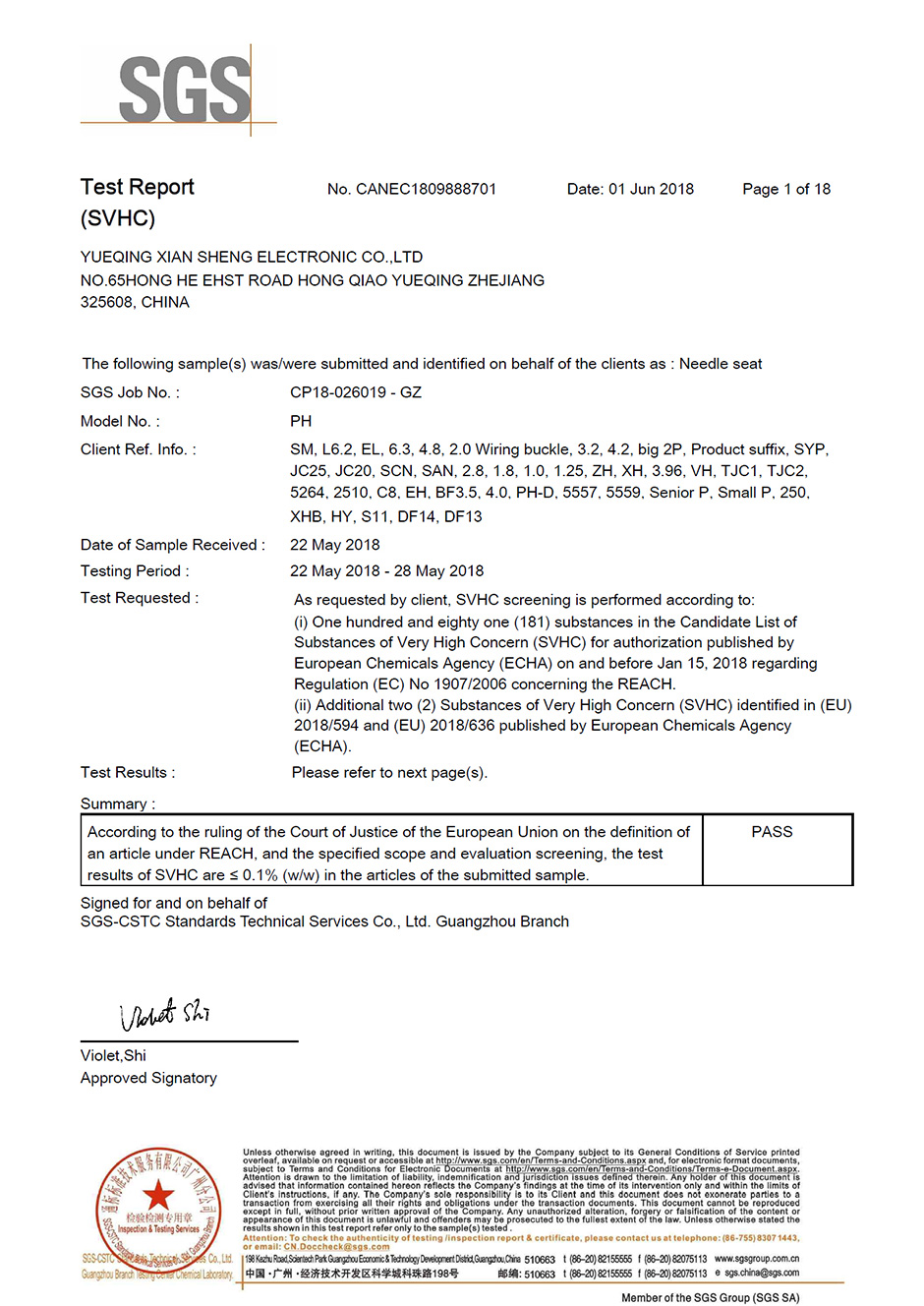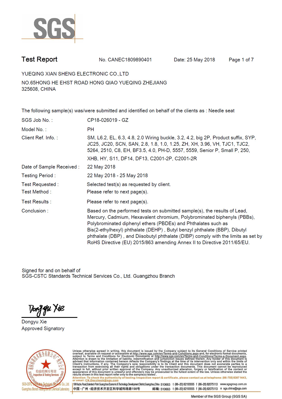 SGS環保認證報告