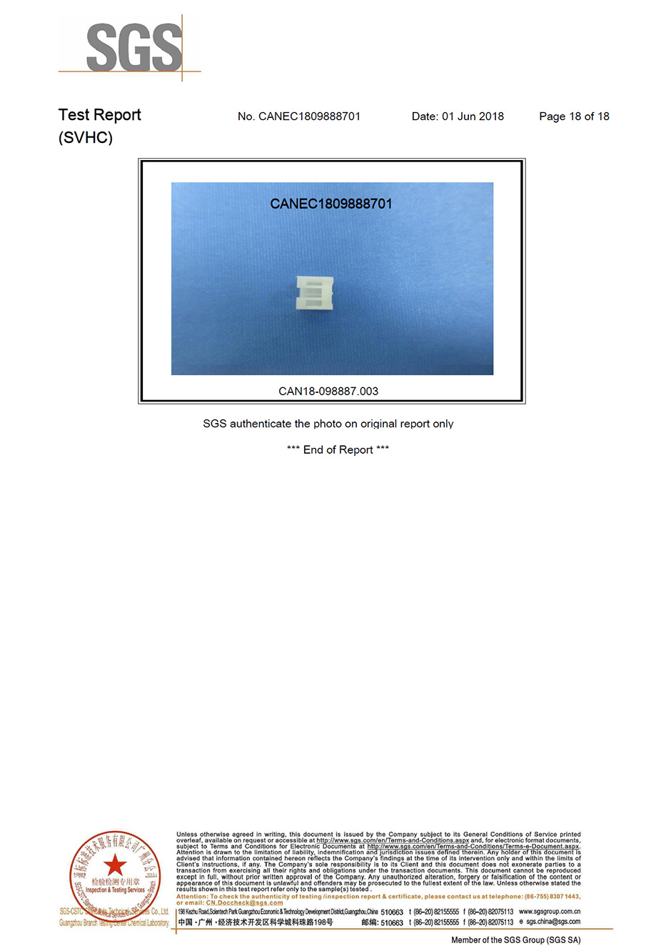 SGS環保認證報告